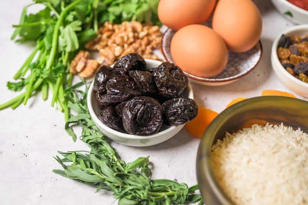 Filled with California prunes, dried apricots, raisins, and buttery walnut halves, these fruit and herb-packed meatballs are inspired by the deeply comforting Persian flavors served at Azizam in Los Angeles. Each one is slowly braised until the ingredients melt together into something rich, fragrant, and unforgettable.