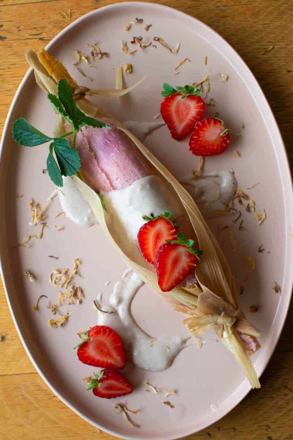 - Strawberry Tamales with Horchata Sauce from Hola Jalapeno – Dessert tamales that make everyone stop mid-bite.
