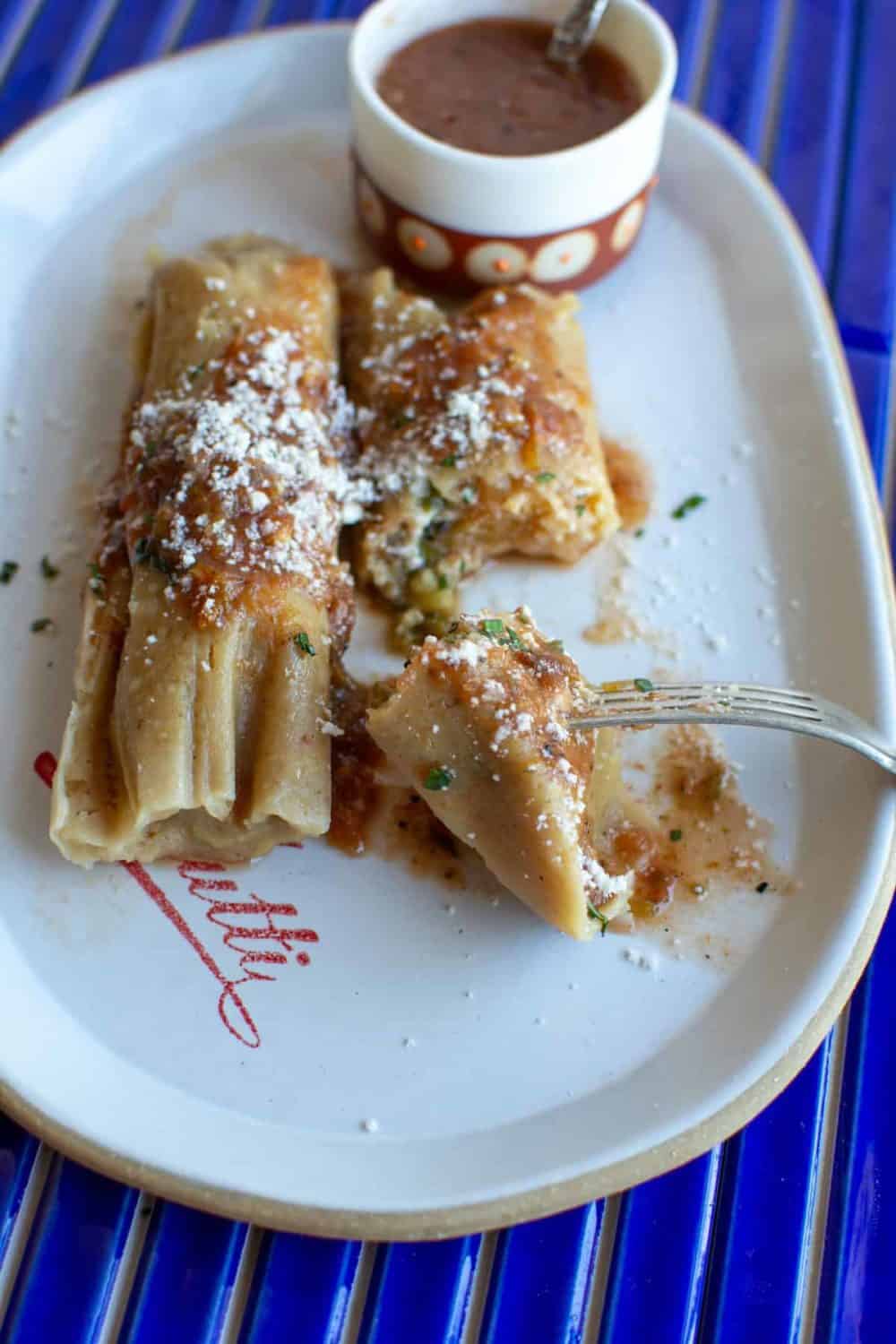 - Chile Poblano Tamales de Rajas con Queso from Salt & Wind – Smoky poblano chiles and melty cheese inside light, fluffy masa.