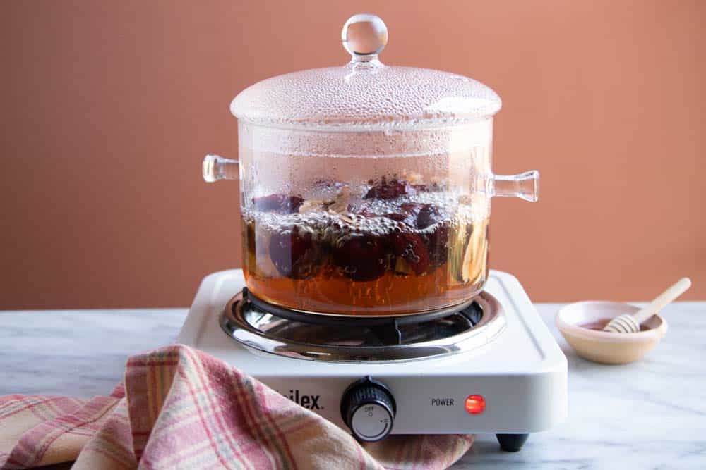 - When the water is boiling, cover the pan, turn the stove off, and let the jujubes steep for at least 15 minutes or for up to a few hours for a more concentrated flavor.