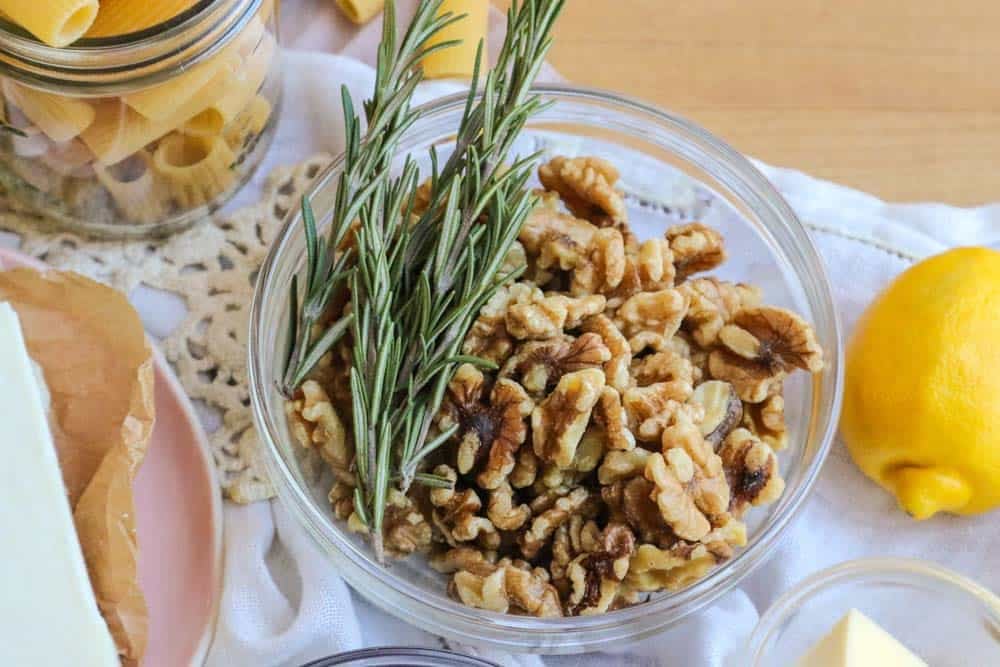 Creamy pasta benefits from contrast, and walnuts provide exactly that.