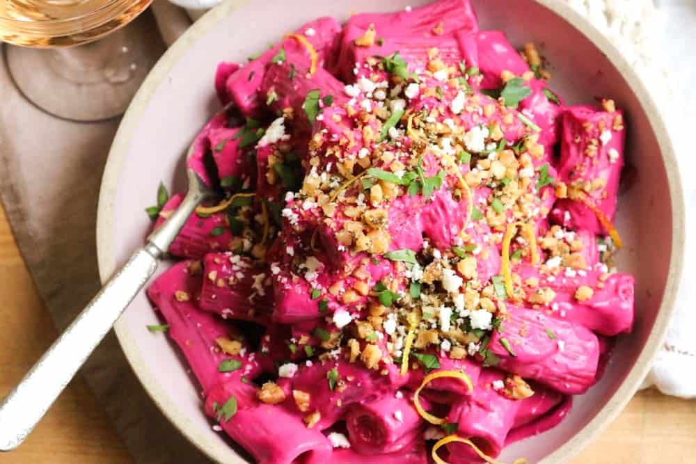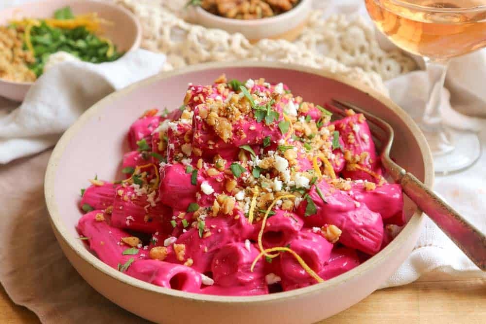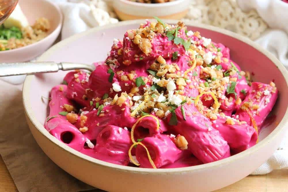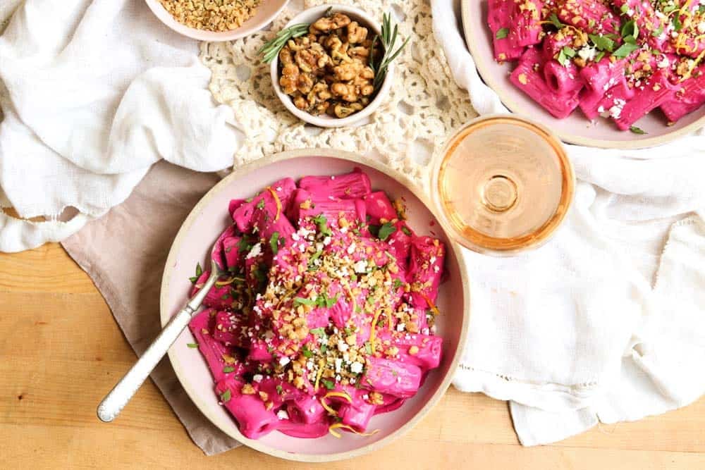 Read Bios »A Creamy Pink Pasta with Beets and Walnuts