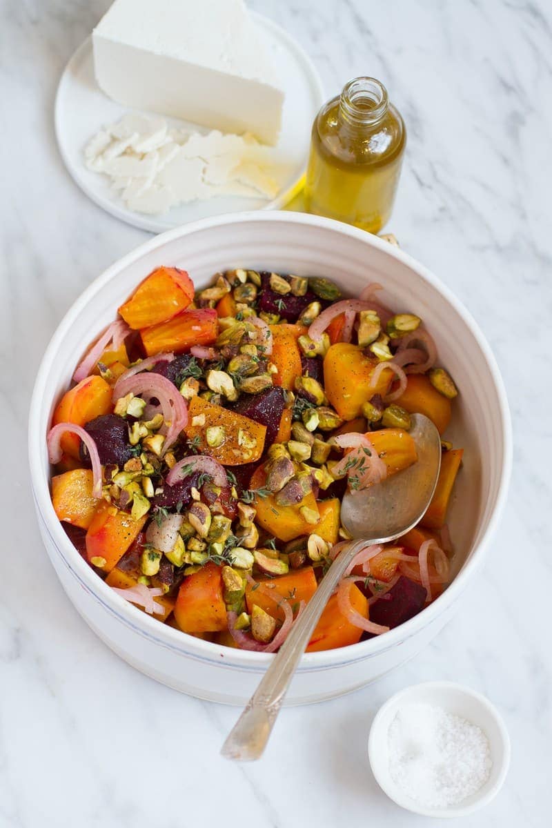 The earthy flavors and colors of purple beets, California sweetpotatoes, and parsnips come together to create one irresistible roasted root vegetable recipe.